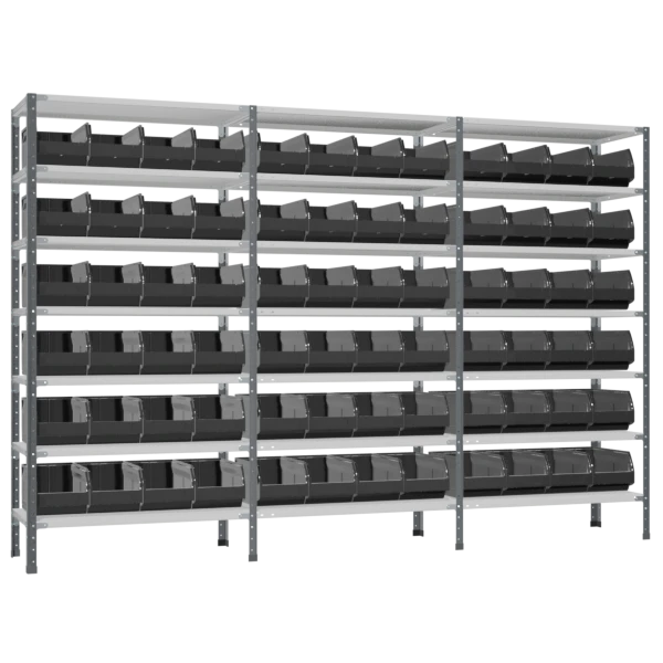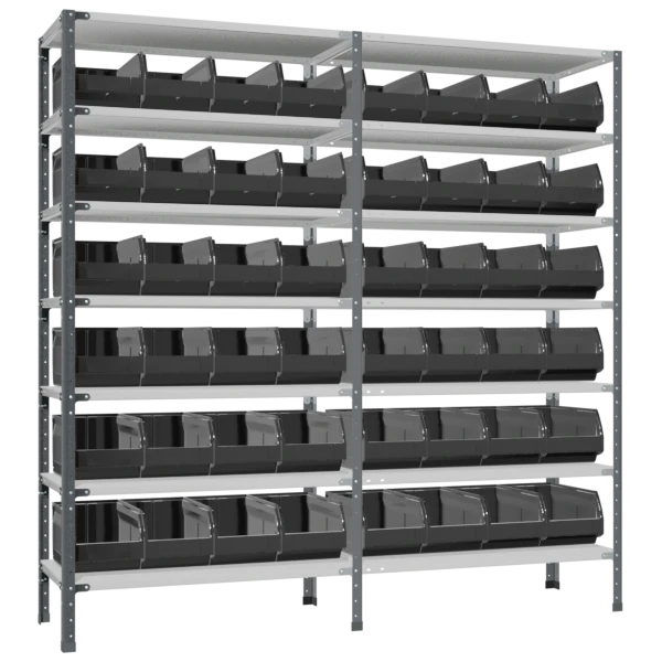 - Стеллаж выполнен из стальной конструкции с порошковым покрытием, обеспечивающим антистатический эффект.