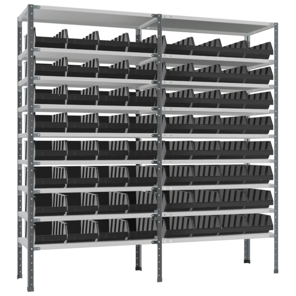 - Стеллаж выполнен из стальной конструкции с порошковым покрытием, обеспечивающим антистатический эффект.