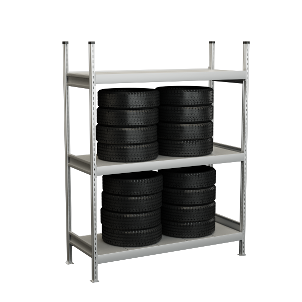 - Комплектуется тремя ярусами, предназначен для горизонтального хранения шин на предприятиях, в гаражах, мастерских, автосервисах.