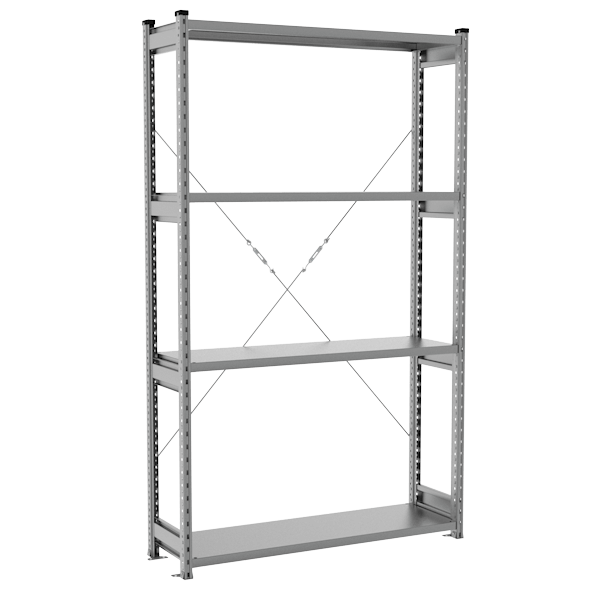 - Устанавливается от 4 полок, шаг регулировки полок по высоте – 53 мм.