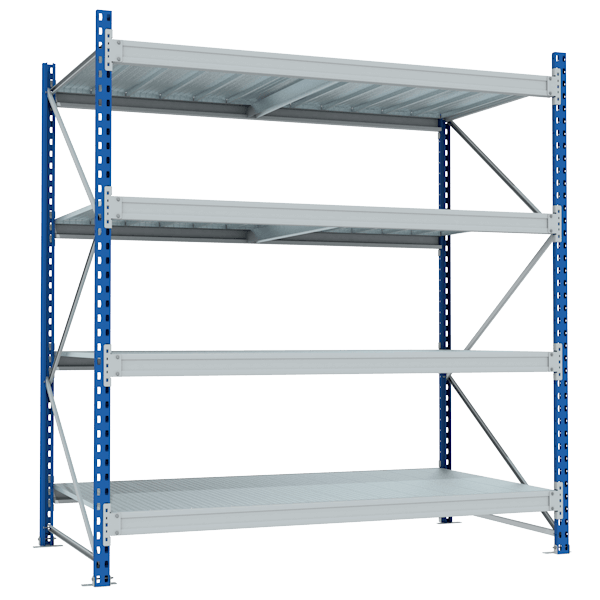 - Безболтовая технология крепления балок к стойкам (на зацепах) ускоряет время сборки и установки стеллажа.