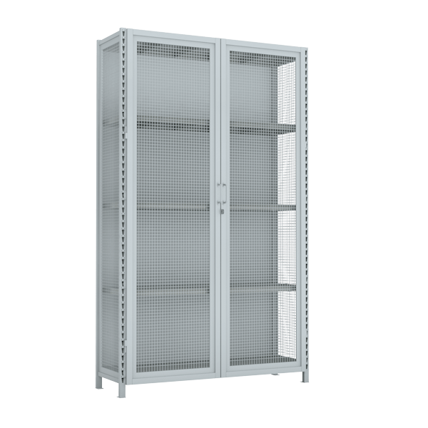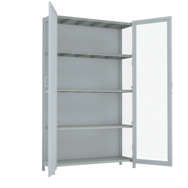 На стеллажи установлены петли под навесной замок. Возможна установка врезного замка (через меню "Аксессуары").