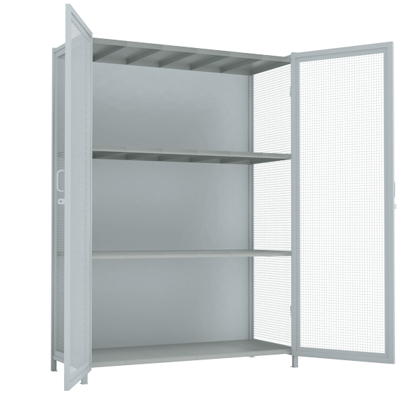 - Двери стеллажа оснащены планками под замок, замок в комплектацию не входит.
