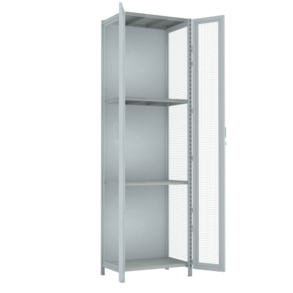 - Двери стеллажа оборудованы планками под замок.