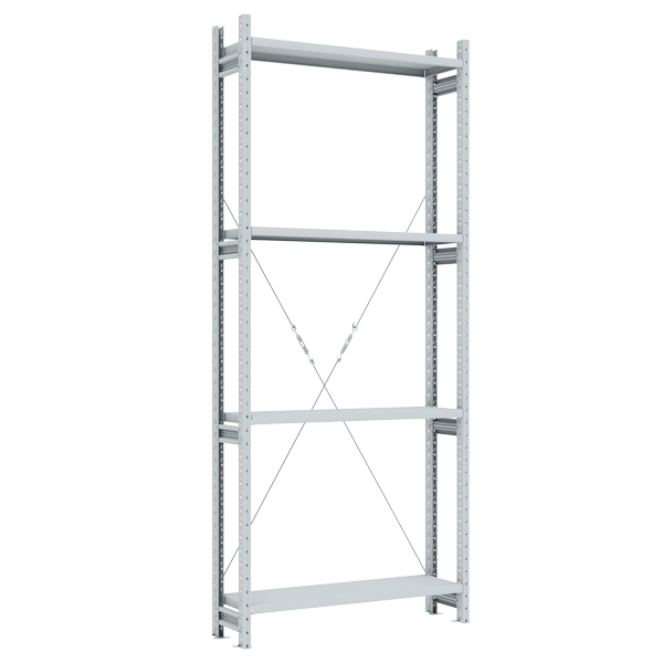 - На стеллаж устанавливается от 4 до 6 полок, нагрузка на полку – до 125 кг.