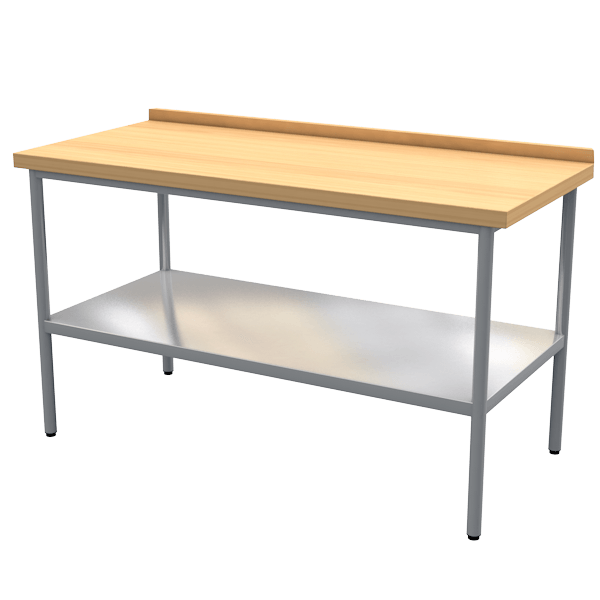 - Стол предназначен для размещения возле стены и комплектуется пристенным бортом высотой 50 мм.