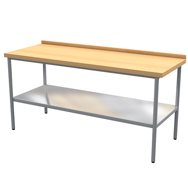 - Каркас выполнен из нержавеющей трубы AISI 201, столешница – из массива бука толщиной 40 мм.