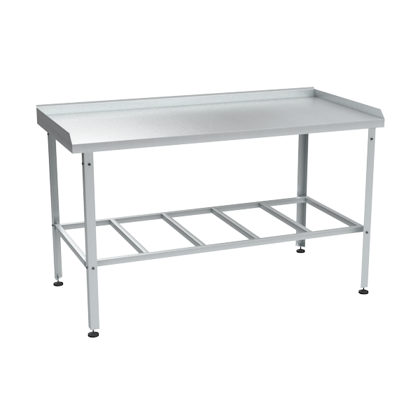- Имеет сборную конструкцию, оснащён тремя бортами высотой 50 мм и оцинкованной полкой-решёткой.