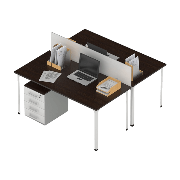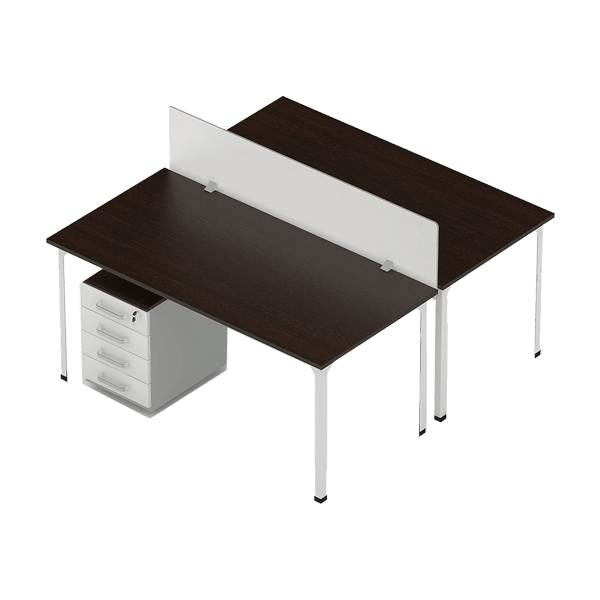- Рабочее место формируется из двух составленных вместе столов и перегородки между ними.