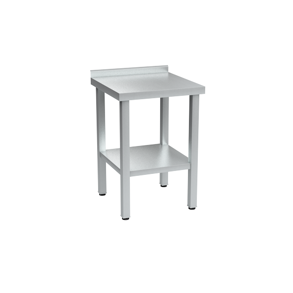 - Оснащён пристенным бортом высотой 50 мм и сплошной полкой из нержавеющей стали AISI 304 толщиной 0,8 мм.