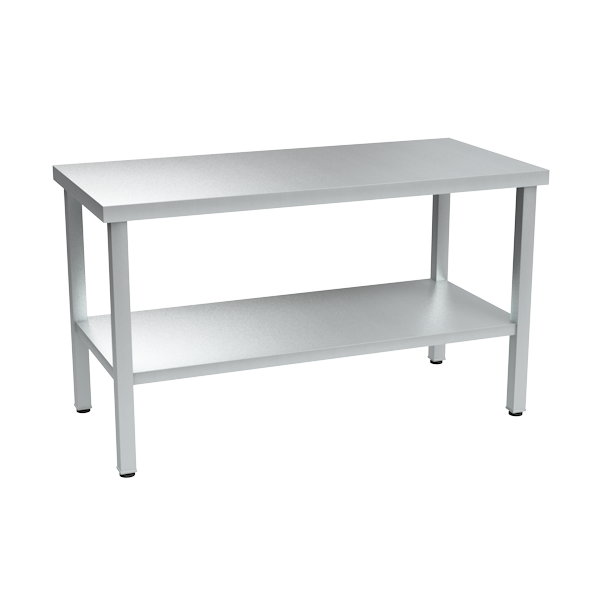 - Выполнен из нержавеющей стали, комплектуется сплошной полкой для посуды и инвентаря.