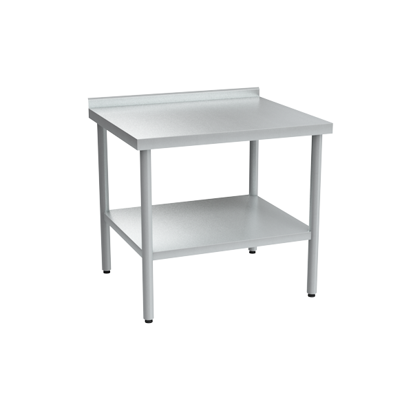 - Оборудован пристенным бортом высотой 50 мм и сплошной полкой для хранения инвентаря и посуды.