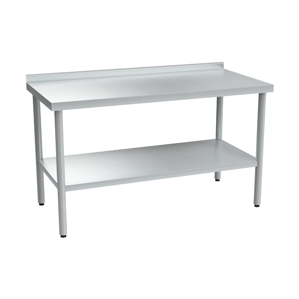 - Оснащён пристенным бортом высотой 50 мм и сплошной полкой.