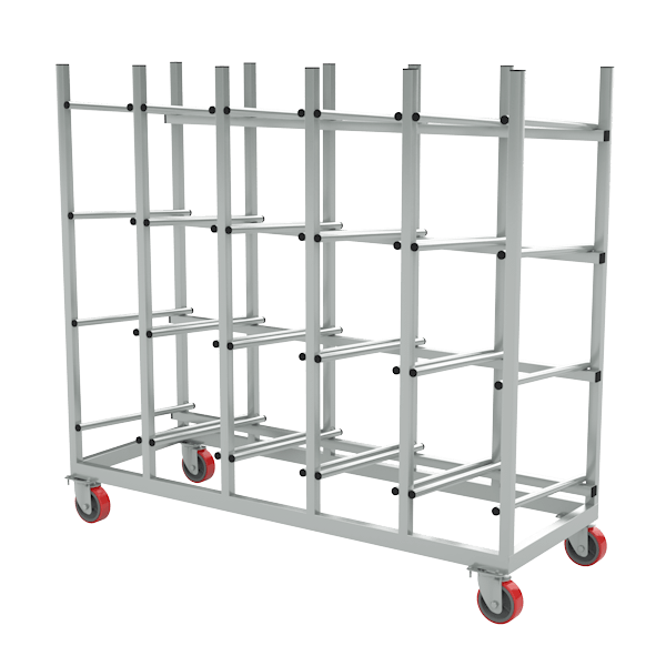 - На стеллаж установлены большегрузные полиуретановые колеса с тормозом в комплекте; диаметр: 130 мм.