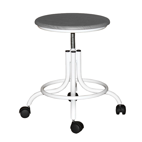 - Табурет Т01-1 винтовой, светло-серый с белым металлическим каркасом — универсальный вариант, подходящий для офиса, учебных зон, салонов и домашнего рабочего пространства. Высота сиденья регулируется в диапазоне 440-560 мм, позволяя адаптировать посадку под рост пользователя и высоту стола.