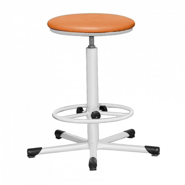 - Табурет Т02 с яркой оранжевой обивкой и белым металлическим каркасом – практичное и стильное решение для дома, офисов и лабораторий.