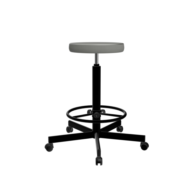 - Табурет на винтовой опоре обивка серая Т02-1/К каркас черный – универсальное решение для медицинских учреждений, лабораторий, косметологических салонов и рабочих пространств.