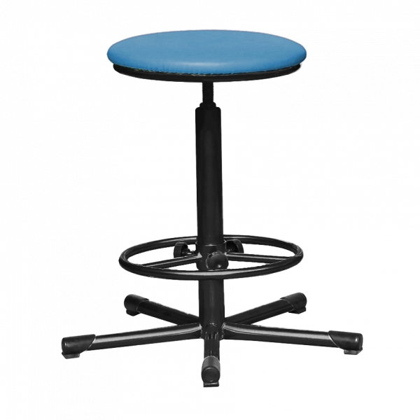 - Табурет Т02 с синей обивкой на винтовой опоре — практичное решение для офисов, лабораторий, мастерских и домашнего использования.