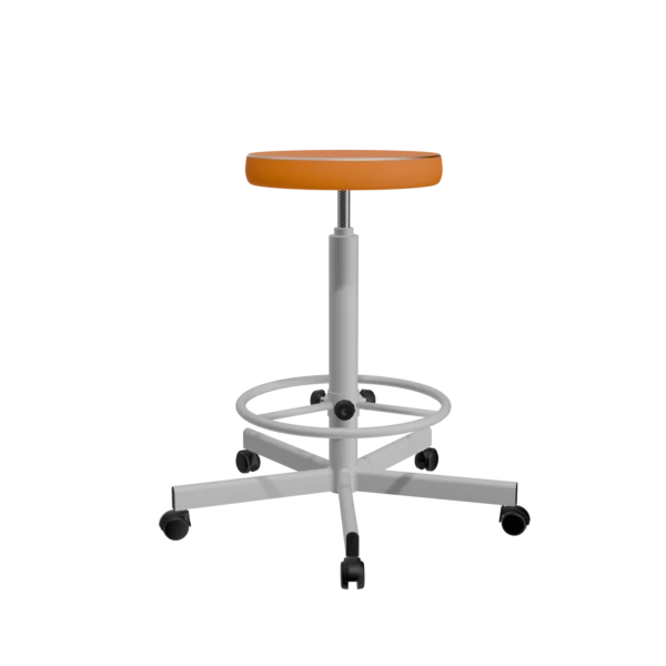 - Табурет Т02-1/К с яркой оранжевой обивкой и белым металлическим каркасом гармонично впишется в интерьер офиса, учебного класса, салона красоты или дома. Сиденье диаметром 330 мм, обтянутое искусственной кожей, плотное и упругое, легко очищается и сохраняет яркий цвет даже при частом контакте с тканями и светом.