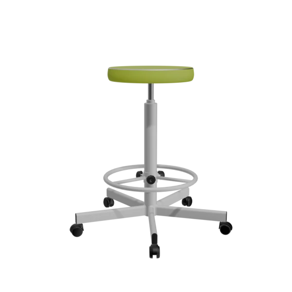 - Гибкая комбинация мобильности и регулируемой высоты делает табурет идеальным для рабочих зон, где важны комфорт и маневренность.
