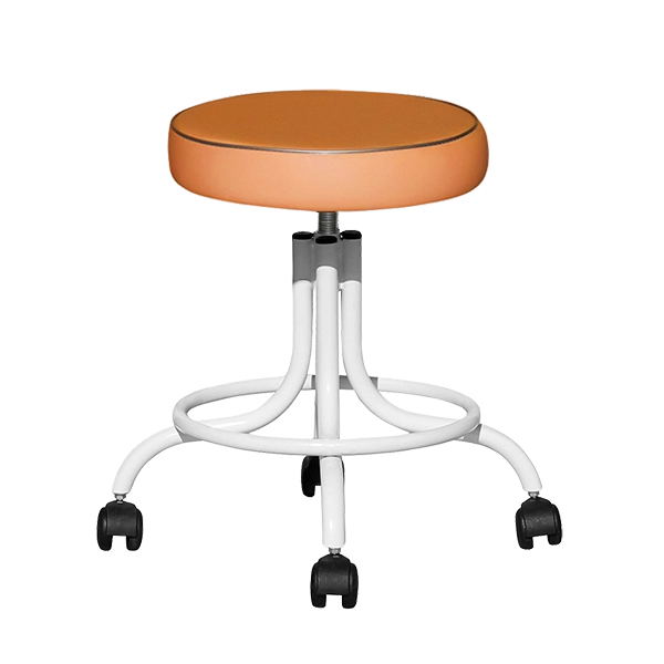 - Винтовой табурет Т01-1 с белым металлическим каркасом и яркой оранжевой обивкой — практичное решение для рабочих и домашних пространств.