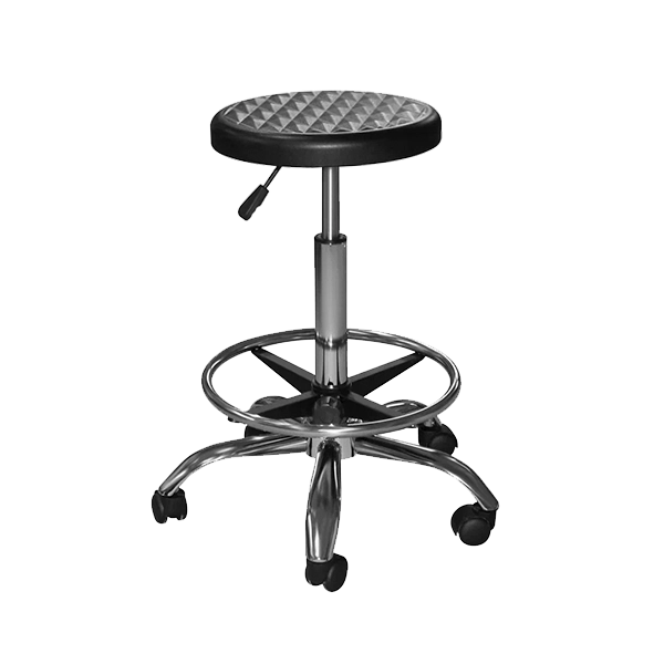- Материал сиденья и основания — полиуретан, который легко очищается и имеет высокую прочность и износостойкость, что делает табурет долговечным и устойчивым к агрессивным химическим веществам.
