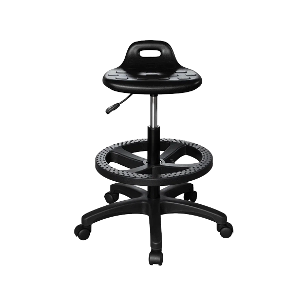- Сиденье прямоугольной формы обтянуто износостойкой экокожей (возможен вариант полиуретан), материал легко моется, устойчив к влаге, дезинфицирующим и бытовым средствам. Форма сиденья удобна для работы за станком, верстаком или рабочим столом.