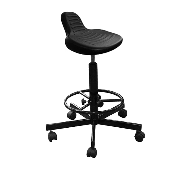 - Табурет промышленный полиуретан Т09/К, форма основания прямоугольное со спинкой, каркас черный – это удобное и надежное решение для работы на производстве.