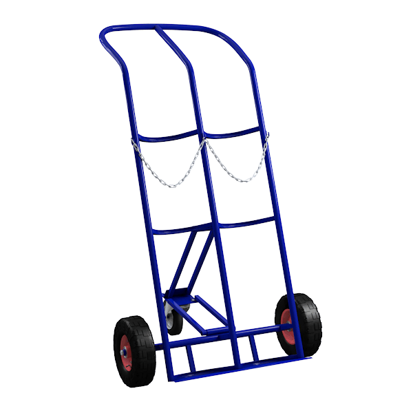- Тележка предназначена для безопасной и удобной транспортировки двух газовых баллонов — кислородных, ацетиленовых и других видов.