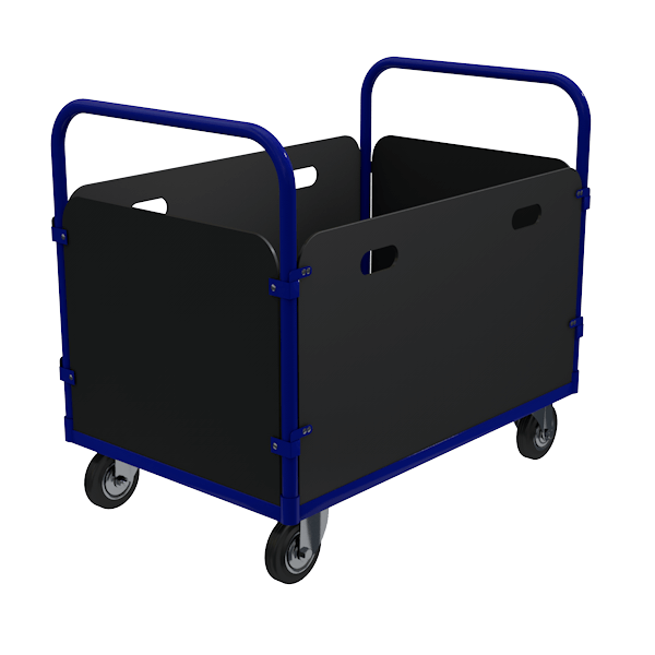 - У тележки отсутствуют открытые зоны, что позволяет транспортировать мелкий груз.