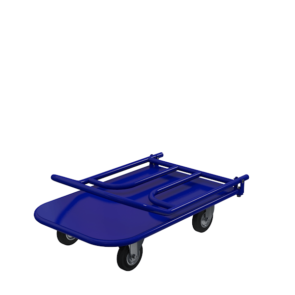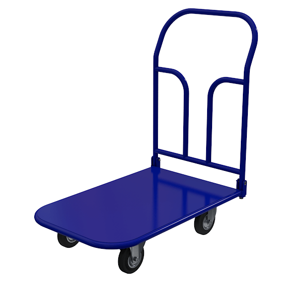 - Платформенная тележка с металлическим настилом и удобной складной ручкой.