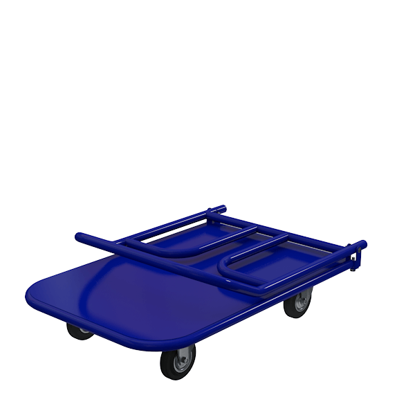 - Платформенная тележка с металлическим настилом и удобной складной ручкой.