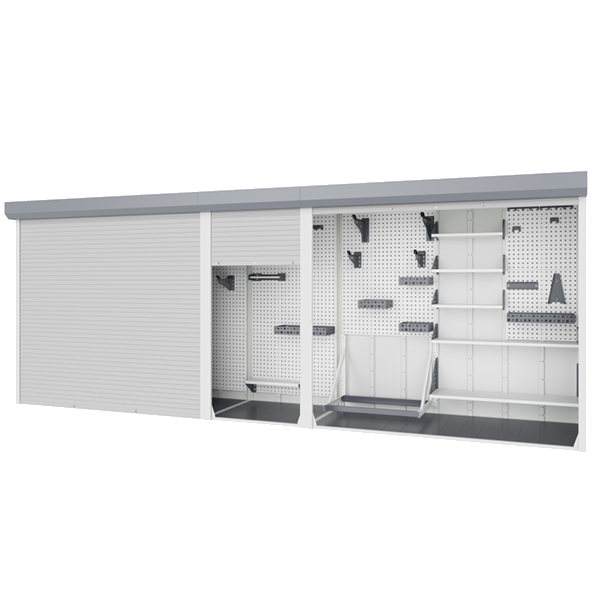 - Представляет собой сборно-разборную конструкция, состоящую из набора панелей, двух соединительных рам и трёх комплектов роллетных модулей.