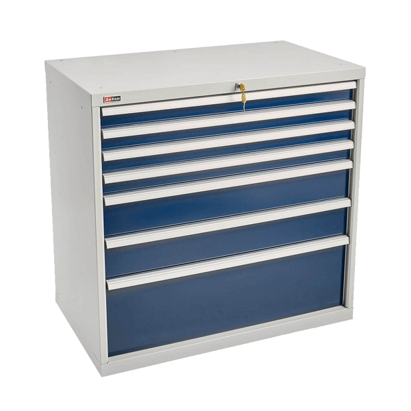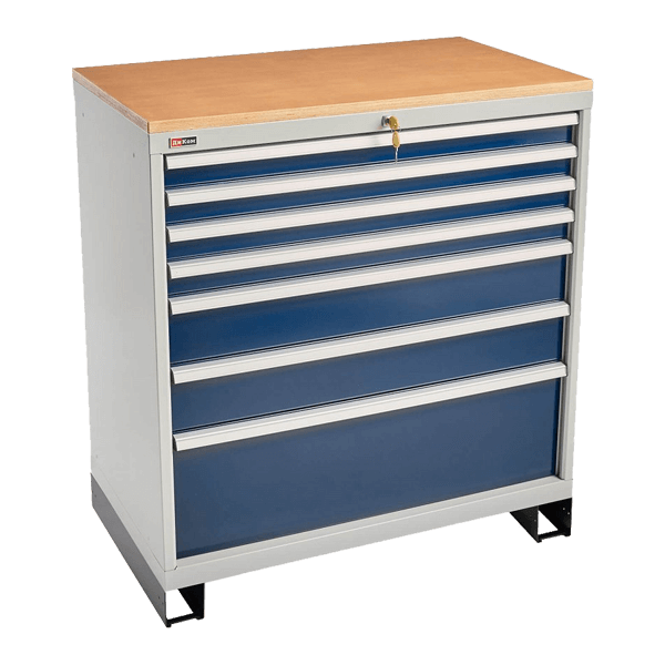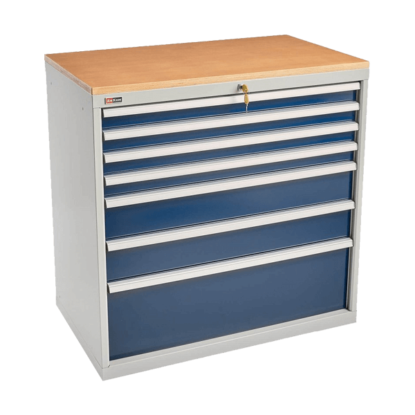 - Оборудована 7 выдвижными ящиками, закрывающимися на центральный ключевой замок.