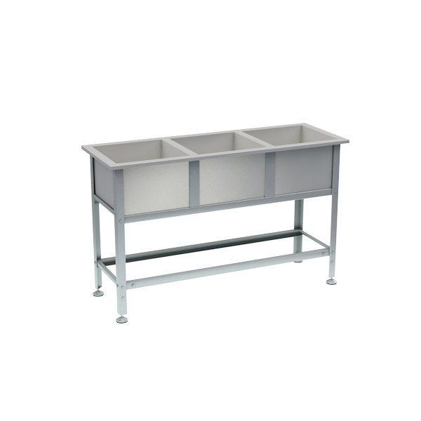 - Состоит из трёх моек, выполненных из нержавеющей стали AISI 304 толщиной 0.8 мм.