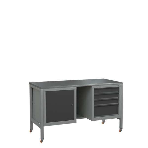 Верстак 1500 с поворотными колёсами, полкой и 2 тумбами