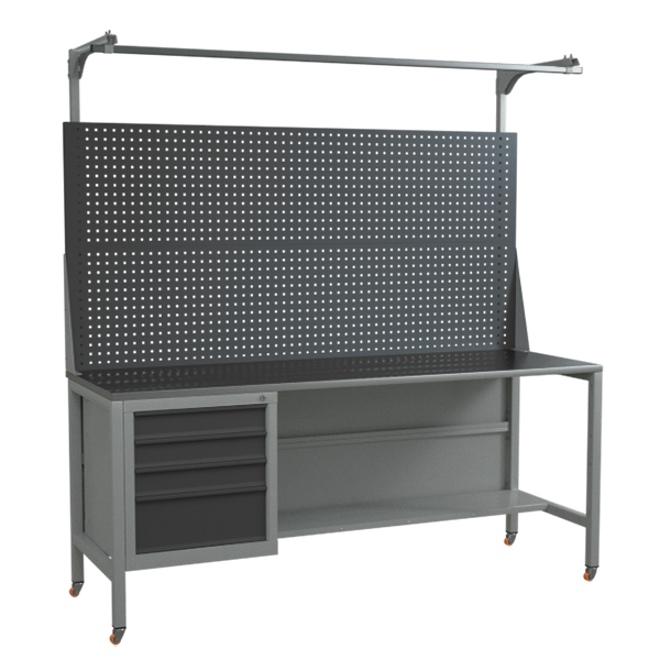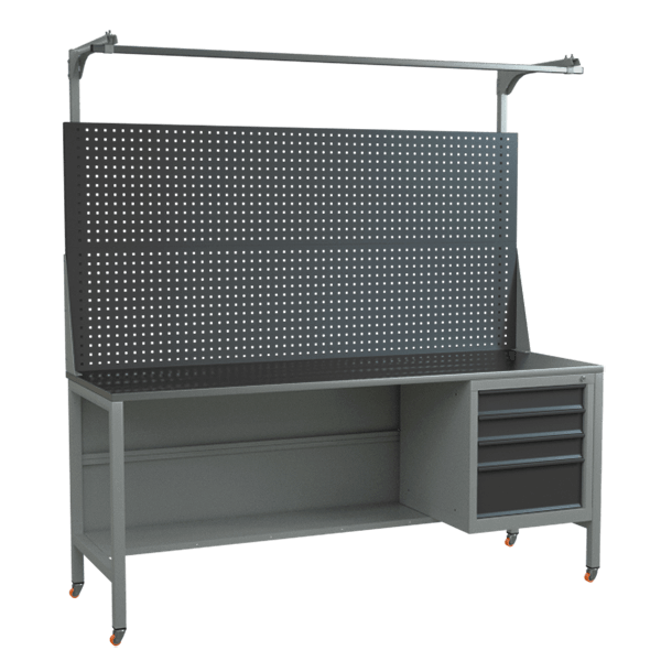 Верстак 2000 с колёсами, двойным экраном и тумбой с 4 выдвижными ящиками