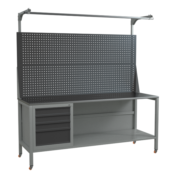 Верстак 2000 с колёсами, двойным экраном и тумбой с 4 выдвижными ящиками