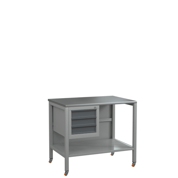 Верстак на колесах 1000 с полкой и тумбой с 3 выдвижными ящиками