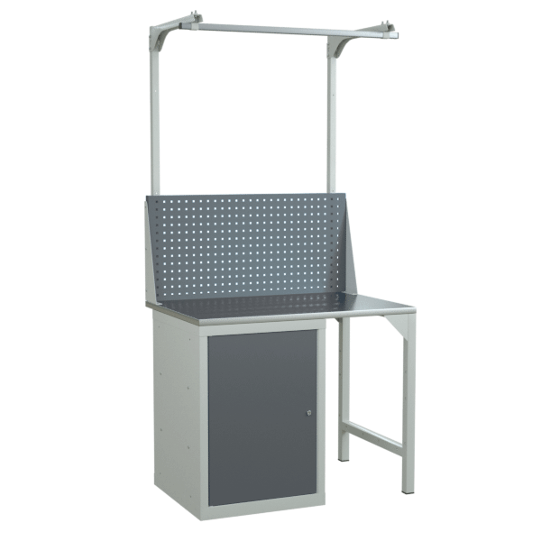 Верстак 1000 с экраном с консолями и тумбой с распашной дверцей и полками 825x1000x700