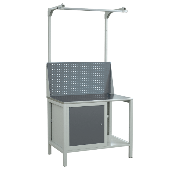 Верстак 1000 с экраном с консолями и тумбой с распашной дверцей и полкой