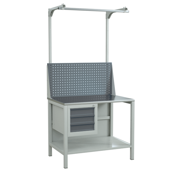 Верстак1000 с подвесной тумбой с 3 выдвижными ящиками и экраном с консолями