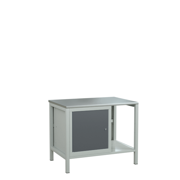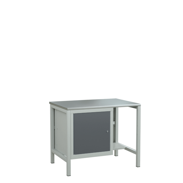 - Оснащён оцинкованной столешницей и тумбой с распашной дверцей и одной полкой.