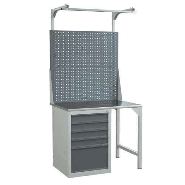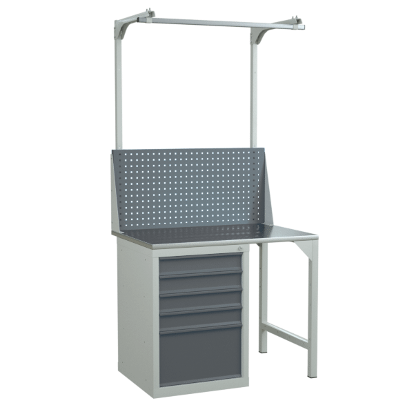 Верстак 1000 с тумбой с 5 выдвижными ящиками и экраном с консолями
