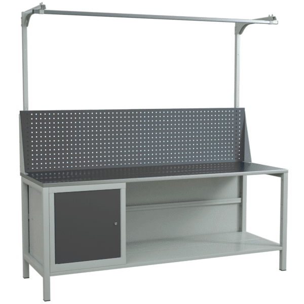 Верстак 2000 с экраном с консолями и тумбой с распашной дверцей и полкой