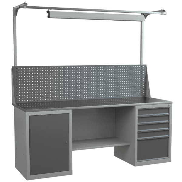 Верстак с полкой-стенкой, светильником, экраном и 2 тумбами