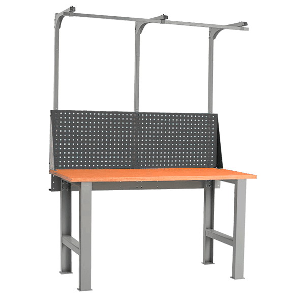 - Верстак оснащается перфорированным экраном и консолью.