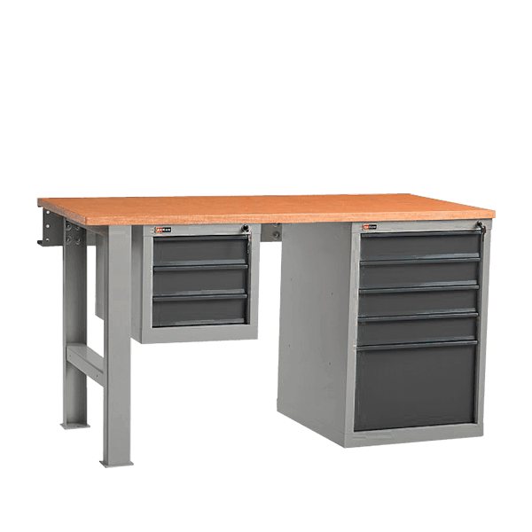 - В качестве одной из опор служит инструментальная тумба с пятью выдвижными ящиками.