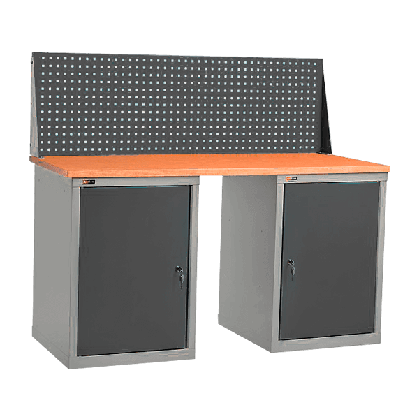 - Опоры для столешницы: две инструментальные тумбы с распашной дверцей и двумя полками.