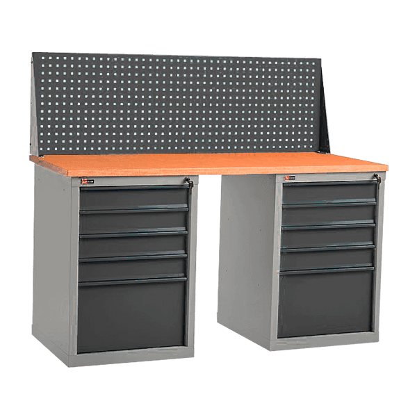 - Опоры для столешницы: две инструментальные тумбы с пятью выдвижными ящиками в каждой.